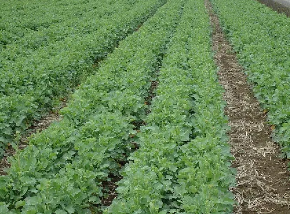 春、芽吹いた菜種はすくすくと育ちます。一面緑のじゅうたんです。