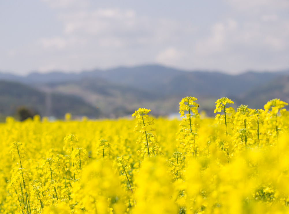 3月から4月にかけて、菜種は花をつけ、いわゆる「菜の花」が満開を迎えます。